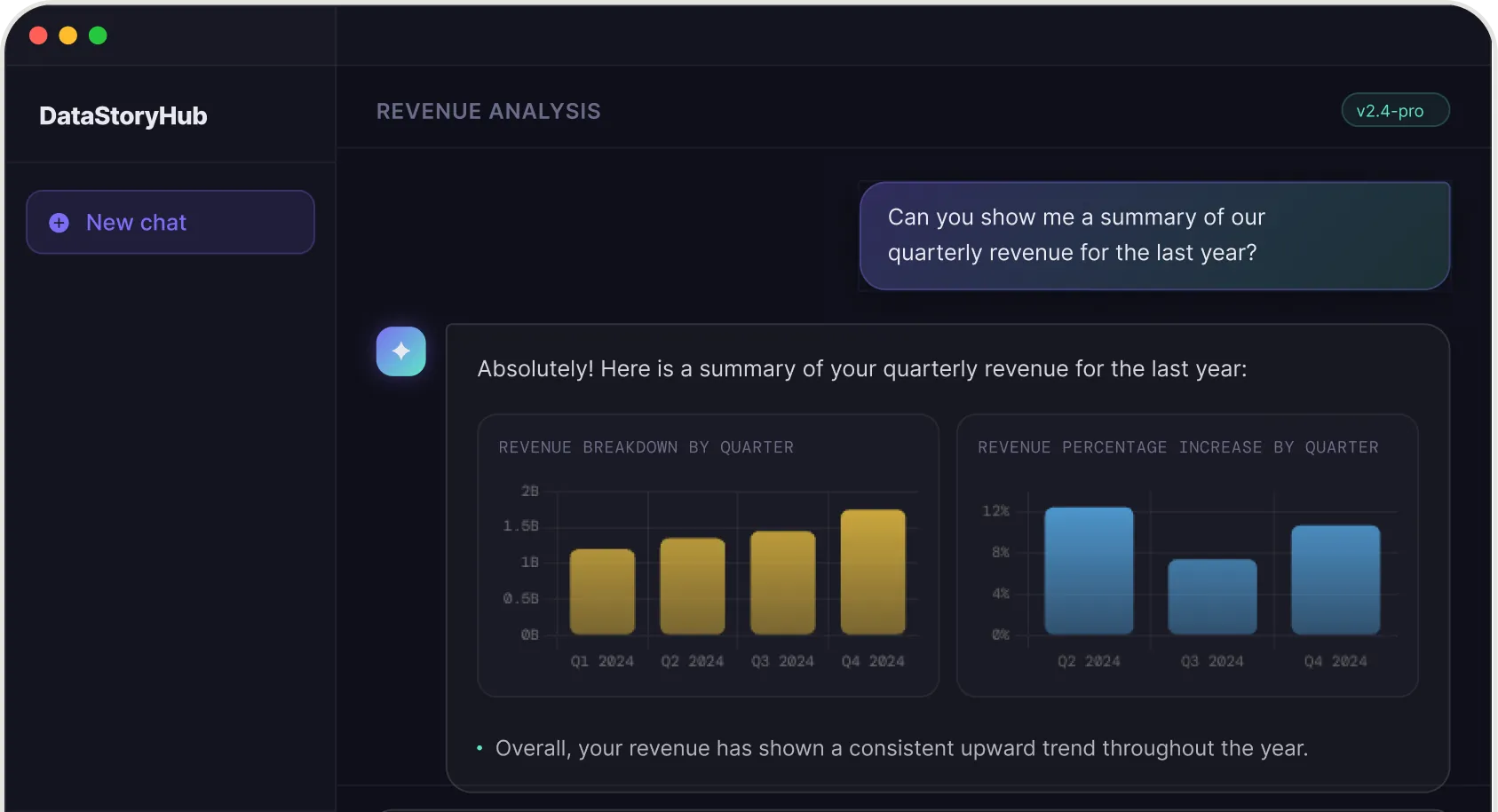 Conversational BI platform powered by LLMs that sits directly on your data. Business users ask questions in plain English and get context-aware answers & dashboards from live data.